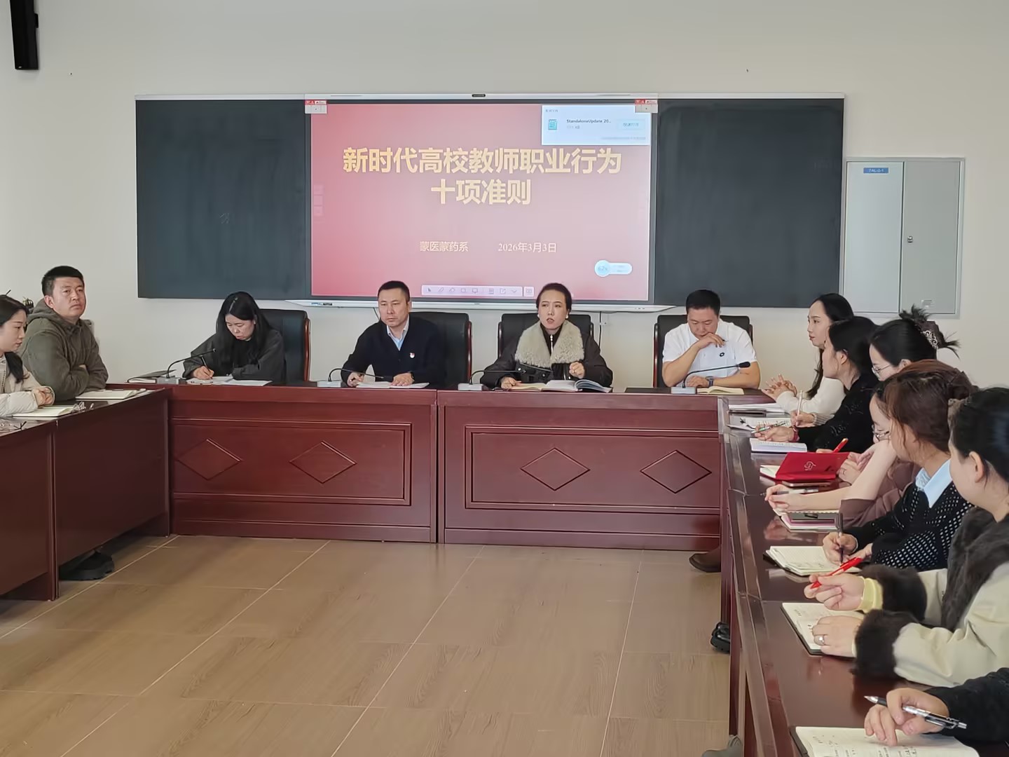 为庆祝第41个教师节,加强教师思想政治建设,9月12日,蒙医蒙药系党总支举办了“双师协同传薪火 同心向党践使…
